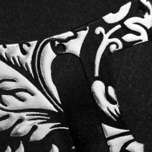 This Strat pickguard and matching back plate were made from 3.25mm thick 3-ply birch wood. The elegant vintage leaves design was first engraved, then painted in black paint, and coated with matte polyurethane. Then the leaves were hand painted with 3 layers of strong, scratch resistant resin and liquid silver was sandwiched in the middle layer. The final result is a spectacular Stratocaster pickguard and back plate set with rich, raised and smooth 3D texture of the leaves which resembles luxury silk brocade cloth that you can usually see on antique furniture and drapes. It shines wonderfully when you move the pickguard at different angles and matches silver hardware.