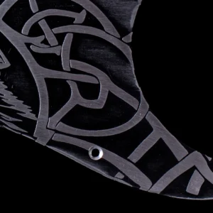Unique, lightly aged and relic’d, engraved and hand painted Stratocaster SSS Pickguard with a Celtic Howling Wolf design in antique Silver and Black color combination. Engraved Aluminum 1.5mm, Metal Strat SSS Scratch Plate with 11 mounting holes. It fits Fender SSS Stratocaster guitars made in the US and Mexico, and most other strats, but please verify the fit. Finish: Satin